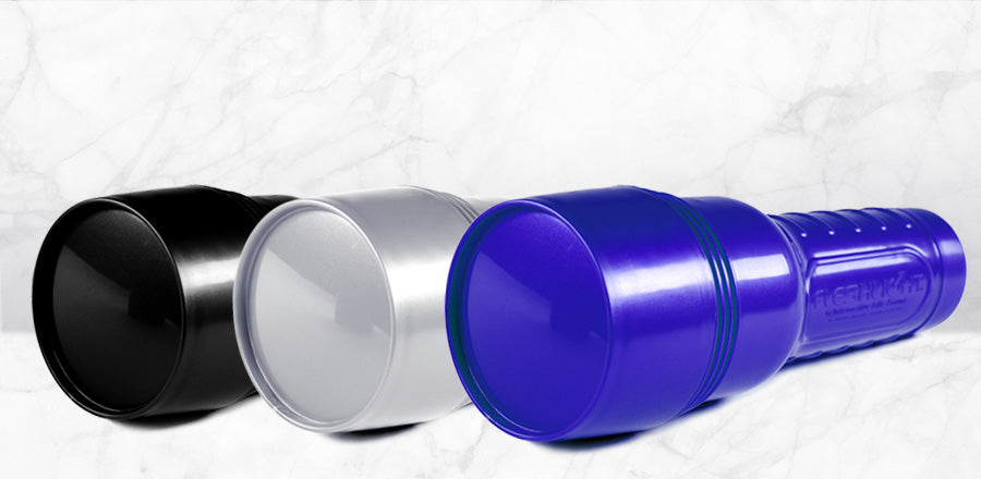 La discreta funda Fleshlight cuenta con una parte superior extraíble que oculta la manga de masturbación y una tapa de extremo extraíble que permite ajustar el apriete.